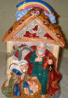 Seriously, is the old guy supposed to be Joseph or Noah? Also, is that structure a stable or an ark?