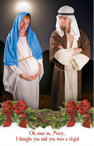 I may not have much of a problem with the Mary and Joseph costumes, but the caption is a whole different matter. I mean it’s kind of offensive.