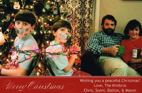 8.Having your kids restrained by Christmas lights and duct tape is a great way to get them to sit still for the camera.