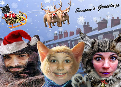 I know this is photoshopped but this is pretty strange, especially with a cat Santa and dog reindeer.