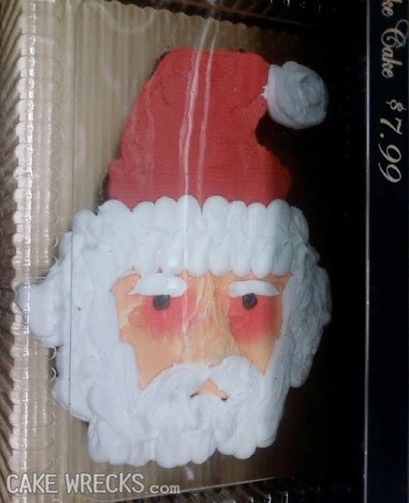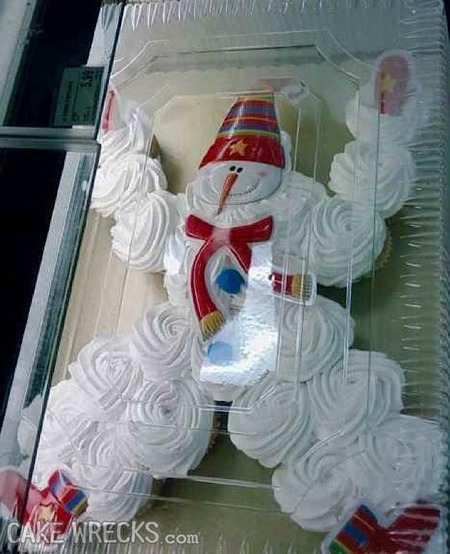 Of course, you can have cakes for any occasion and Christmas is no exception. However, not everyone either makes a cake for Christmas or buys one at the store perhaps specially made. Yet, while some may seem like works of art as shown above others, well, though may taste good, shouldn’t be presented at any Christmas family gathering. Now I can’t do home made cakes because they never come out the way you intended. Besides, with store bought cakes, you tend to have higher expectations even at your neighborhood Wal Mart or supermarket. So without further adieu here is a list of some store bought Christmas cakes gone bad.