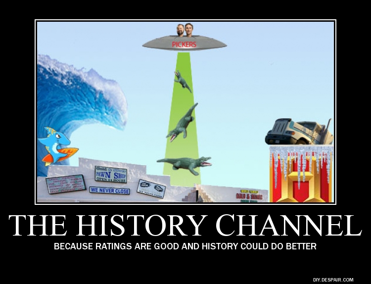 Look, when it comes to ancient ruins, I’m sure even the best archaeologists have their own theories on their construction but saying that they were built by aliens goes beyond ridiculous. Not to mention, it’s kind of insulting to the indigenous cultures of Africa, Asia, and the Americas who actually built such artifacts as if they weren’t intelligent or sophisticated enough to do so which we can’t fully understand in the all-knowing Western world. Well, maybe those cultures weren’t as uncivilized as people here make them out to be or that we don’t understand everything. Not to mention, we know most of the indigenous people built many of those structures themselves. And seriously, all the stuff about prophecies and apocalyptic scenarios may be appropriate on the Syfy Channel or The Twilight Zone but not on something with a name like History. Then you have stuff about conspiracy theories, which is all seen as speculative and subjective as well as probably not true. Besides, a lot of history’s mysteries don’t usually involve an elaborate conspiracy theory. As for reality shows, well, just don’t get me started. Sure you may have had ice truckers, pawn stores, and ax men in the past, but their shows examine their lives in the present yet unfortunately probably consists of the closest thing to educational programming on there besides Modern Marvels. At least The History Channel doesn’t have to make some stuff up from those shows but I’d usually refer reality shows as the bottom of the barrel in quality programming.