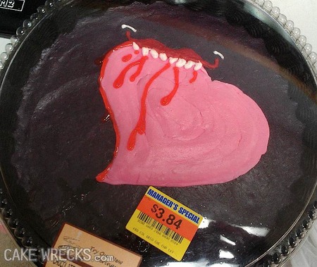 This is pretty gory for a Valentines cake. Also, whatever is chewing the heart doesn’t seem to have any eyes.