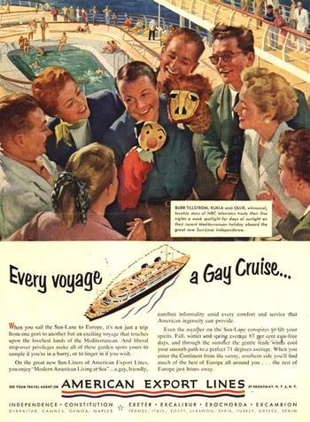 On American Export Lines, everyone is guaranteed to have a gay old time. However, a gay cruise today would mean something completely different.