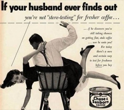 I’m kind of looking forward to the next ad when the wife throws her husband out the house and puts him under a restraining order. Seriously, why in God’s name would anyone think this is funny? This is domestic violence for crying out loud! Buy our coffee or your husband will beat you? What kind of message is that?