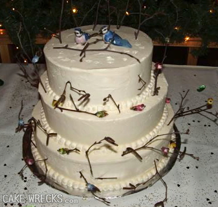 Sure the birds may be beautiful in the snow but all the branches on this cake seem dead for some reason. It doesn’t seem that this cake was made for a happy occasion since it looks rather depressing if you ask me.