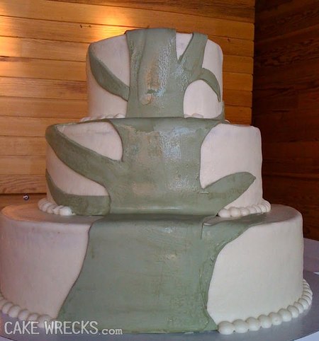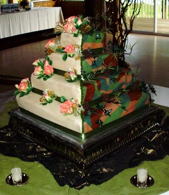 As awful looking as this cake is, at least both bride and groom tried to accommodate their tastes. Still, camouflage shouldn’t be used on wedding cakes. I’m sorry.