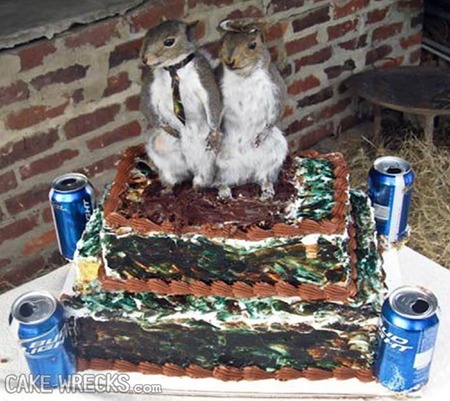 The taxidermy done on these cake toppers was by Norman Bates. Also, using taxidermy as cake toppers is kind of unsanitary if you ask me but perhaps this cake was done on a budget.
