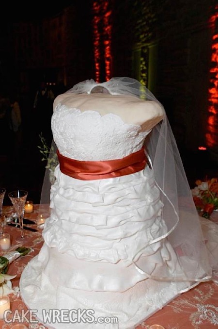 Seriously, this is freaky if you ask me. Why have a cake of the bride’s bust? Also, the fact it doesn’t seem to have a head is even more disturbing.