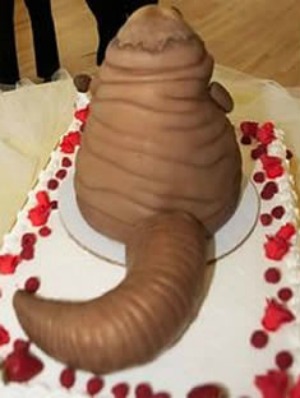 Actually, I can think of a lot of better Star Wars wedding cake ideas than this one. Also, have you notice that Jabba the Hut resembles an abnormally shaped turd from the back?