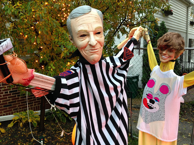 I know that Halloween isn’t too far from Election day. As a Catholic I’m perfectly fine with Halloween religious displays since well, there’s a lot of creepy religious stuff. But it’s only as good if the religion your mocking is your own, Christianity, cults, Neo-Paganism, Wicca, or Satanism. Yet, as a Democrat, for the love of God, don’t incorporate politics in your Halloween displays because you never know who you may offend in your neighborhood.