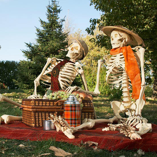 Just a nice quiet afternoon open air picnic with Mr. and Mrs. Bones. I’m sure the neighbors won’t complain though they’d wonder where you got the skeletons from.