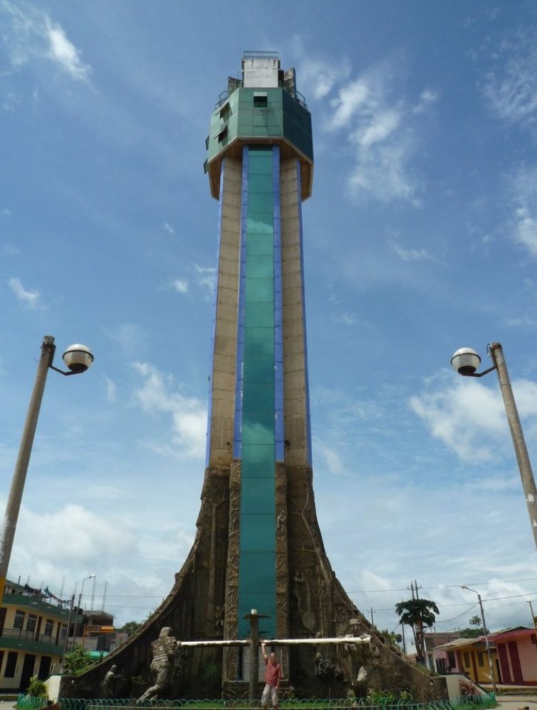 It’s the Obelisk building in Peru. Of course, this is the kind of architecture that appears when you put the large tower of Isengard in some kind of cyber punk science fiction film like Bladerunner.