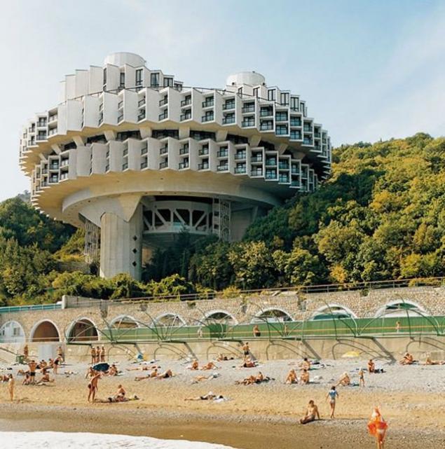 This is actually a resort hotel at a beach in Yalta, a well known Russian vacation spot in the Soviet Era. Still, it does remind me of Dr. No’s place for some reason.