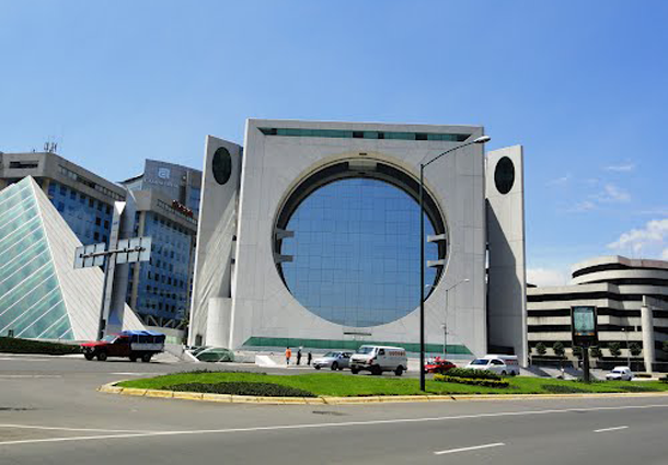 It’s called “La Lavadora” or “the Washing Machine” in the heart of Mexico City’s business district. Also lights up and features a pyramid. Still, “washing machine” makes better sense.