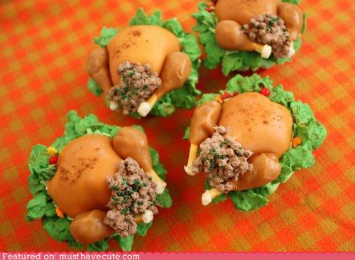 39. May I present to you a scrumptious turkey dinner on a cupcake.