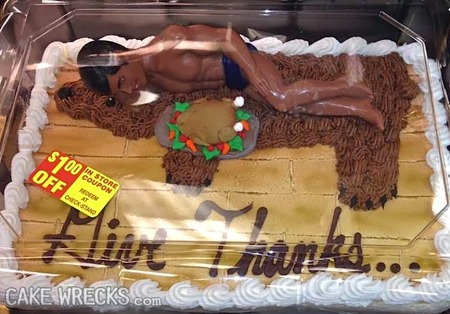 As with most holidays, cakes seem to have a special place. And Thanksgiving is no exception. Of course, the motifs are turkey, Pilgrims, Indians, pumpkins, cornucopia, and fall. Of course, you’ve probably seen some of them in my previous post on Thanksgiving treats. Still, I could go on and on about the nice lovely turkey day cakes I’ve seen. However, all that would make you unwilling to view such post. So instead, I’ll show you some other cakes that you might not want around at your family home on Thanksgiving. Whether it’s poor depictions of turkeys or something you don’t want your kids to see, sometimes mistakes are made. So without further adieu, here are some of the cakes featuring Thanksgiving blunders.
