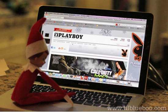 A popular holiday tradition that has caught on in recent years is the Elf on the Shelf which is based on a 2005 children’s book written and published by mother and daughter Carol Aebersold and Chanda Bell. The book tells of a story of how Santa Claus knows which kids are naughty or nice by sending elves to spy on children between Thanksgiving and Christmas Eve, after which they return to the North Pole until the next holiday season. Each of these hardbound picture books come with a small soft toy in the form of a pixie scout elf so parents around the world can make this their own holiday tradition, just to make sure their kid belongs on Santa’s “nice” list. Now there are certain rules that parents and children must follow during the elf’s stay inside the home. First, it must maintain a distance and provide a watchful eye for Santa. Second, it must never move or speak while the residents are at home and awake, but can “move” from place to place when no one is around. Third, children must never touch the elf or it will lose its magic. Yeah, I know it’s stupid but what do you know? Still, while it does attract a lot of criticism from parenting experts and sometimes parents, the fact that the Internet is filled with pictures of the family’s elf getting into all kinds of hilarious mischief which got me thinking about doing a post where the Elf on the Shelf does things that would put it on the “naughty” list. Sure you’d like to think that these elves are reporting things about the kids to Santa in the evenings but you can’t really be so certain. So I ask you parents to spy on the Elf on the Shelf and use your camera and the Internet to report whenever the elf is doing something naughty. And I don’t mean the little harmless hijinks like making snow angels in flower. No, I mean stuff that could get a popular children’s show host suffer a fast and hard fall from grace like Pee Wee Herman did (like masturbating while watching a porno in a theater). So if you see your terrifying Elf on the Shelf doing any of these terrible at least PG-13 rated things, please remember to take a picture, show it on the Internet, and call this hotline number to report it via 1-800-555-BAD-ELF1. So without further adieu, here’s a great treasury of Elves on the Shelf gone horribly, wildly, and inappropriately bad. Warning: most of these images aren’t for kids and may be unsafe for work.