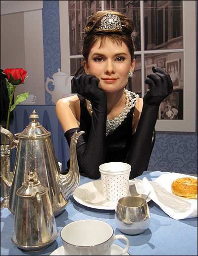 By the look at those sullen big brown eyes, you’d think Holly Golightly might have murder on the mind for George Peppard. Seriously, this wax figure seems to make Audrey Hepburn seem miscast for Breakfast at Tiffany’s on account of being too sinister.