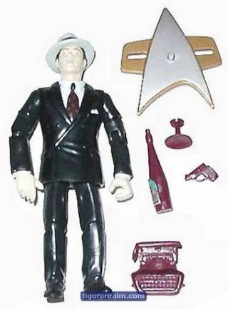 Seriously, why have an android in a 1920s gangster outfit with his own gun, glass, booze bottle, and typewriter? Did Next Generation have a 1920s Prohibition episode? I mean at least 1920s action figures of Kirk and Spock would make more sense.