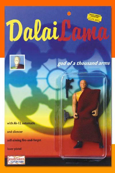 Comes with an A-12 automatic and silencer as well as a self-aiming fire-and-forget laser pistol. What? Okay, now I know Jesus is already ascended into Heaven by now, yet there is still a Dalai Lama around who’s exiled in India. And no, he isn’t known in Buddhism as a “God of a Thousand Arms.” Not to mention, he doesn’t even believe in violence. Still, kind of feel tempted to send him one of these.