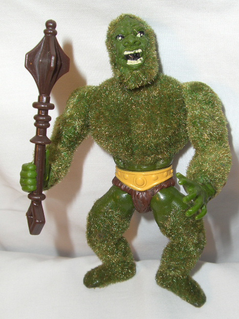 Comes with his own club and speedo. And yes, he’s supposed to be a bacteria grabbing walking carpet as if he was a lovechild between the Incredible Hulk and the Grinch. Also said to have “a real pine scent.” Creepy.