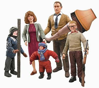 Now this set includes: Ralphie with his Rough Rider BB gun, the Old Man with his Leg Lamp, Flick with his tongue sticking to flag pole, Mom, and Randy. They also have Scut Farkas and Ralphie in a pink bunny suit for those interested.