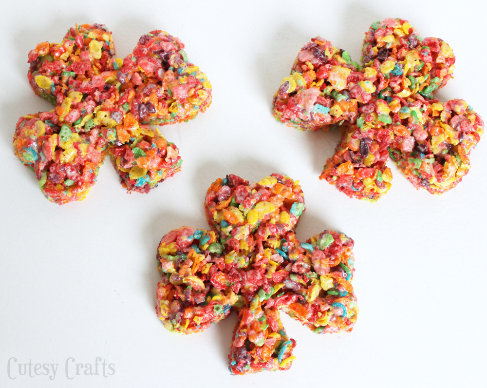 39. Celebrate Saint Patrick’s Day with these shamrocks made from Fruity Pebbles.
