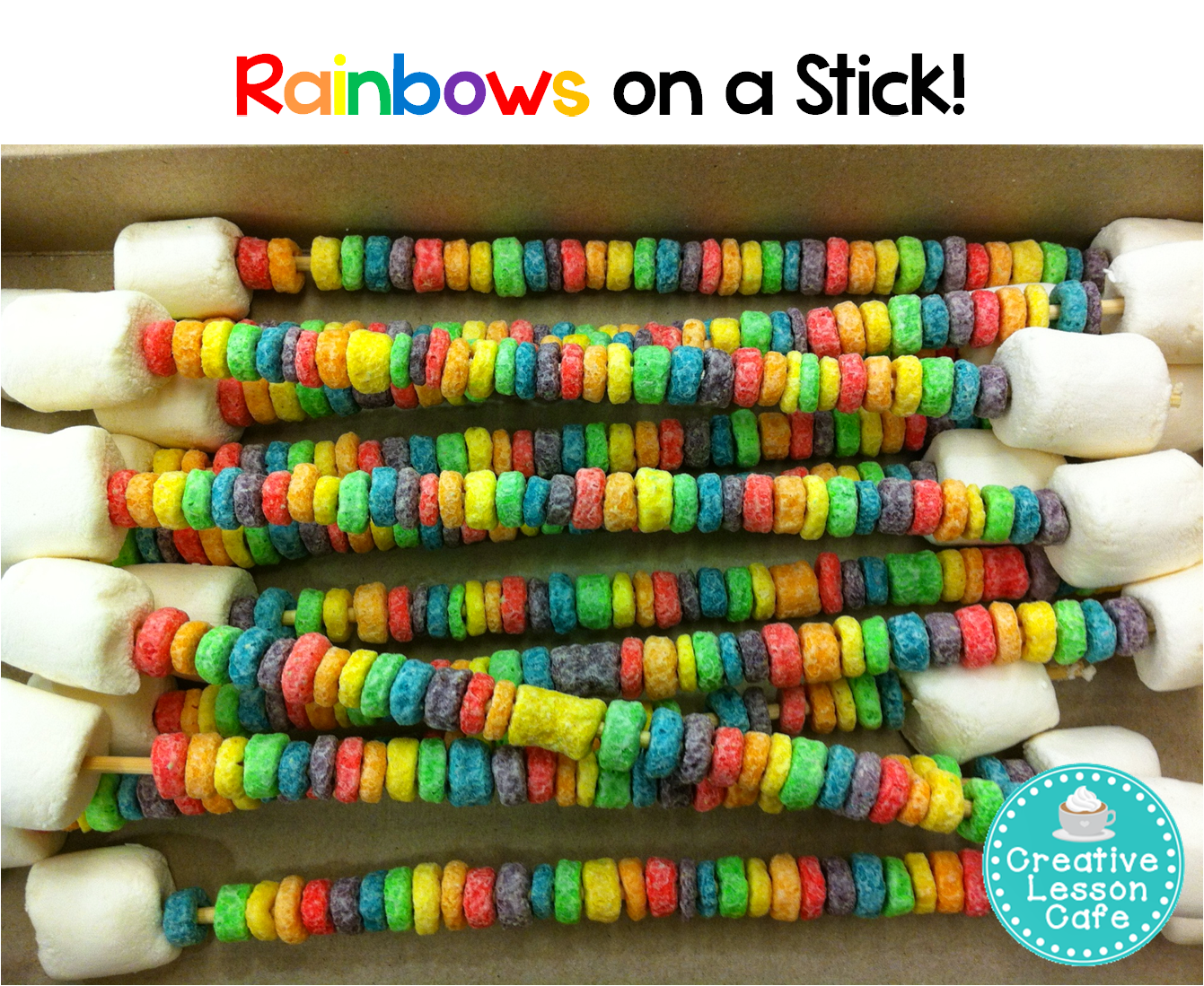 77. For the kids on Saint Patrick’s Day, what better snacks for them to make than rainbows on a stick?