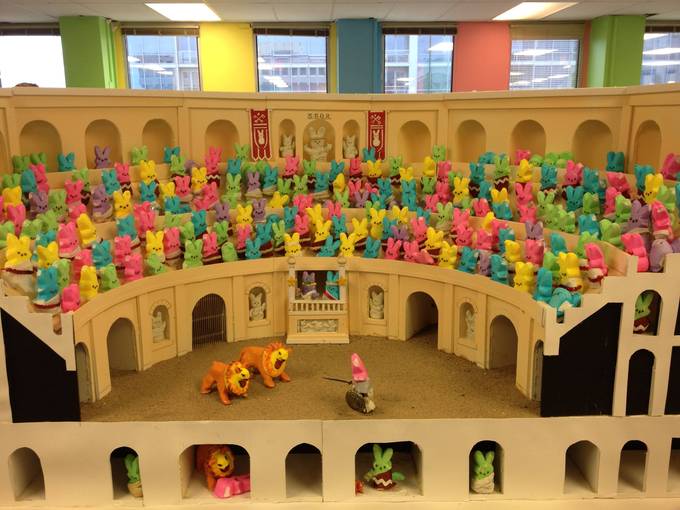 And it seems like they’re offering some helpless white damsel peep as a sacrifice to their giant bunny peep god. Yeah, where is our great white hero now?