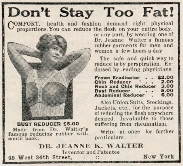 Products include Frown Eradicator, Chin Reducer, Neck and Chin Reducer, Bust Reducer, and Abdominal Reducer. They also have Union Suits, jackets and support hoes. Of course, hate to see what some of these weight loss contraptions look like.