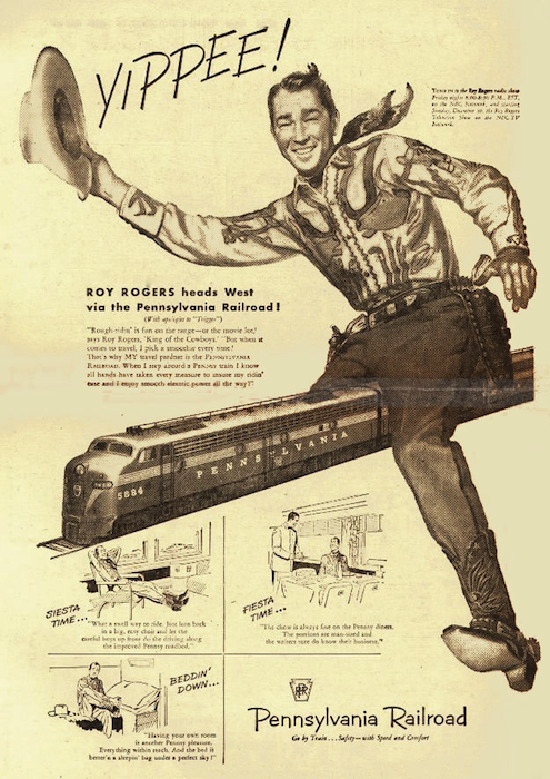 56. Roy Rogers heads west on the Pennsylvania Railroad.