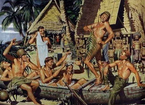 Seems like the Pacific Island natives aren’t pleased with the American GIs frolicking with tropical brain fever. Still, there’s a lot of homoerotic subtext I can’t even list here.