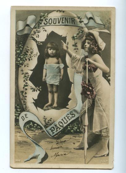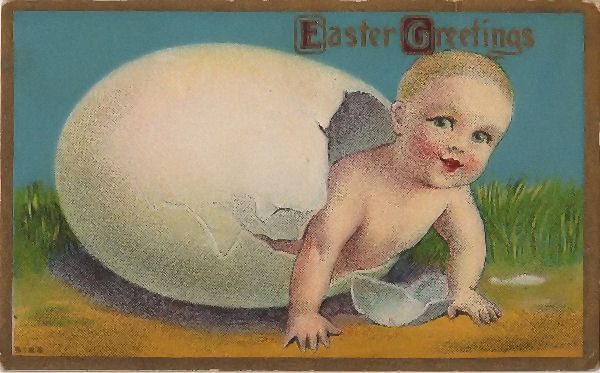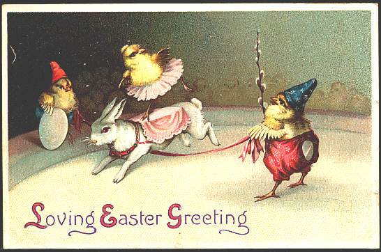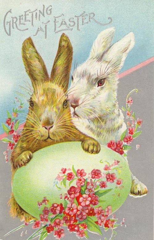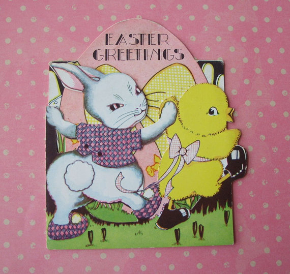 Okay, I think this rabbit is just plain terrifying, especially where he has his hands. By the way, despite the kid having a butch haircut, that’s definitely a girl because little boys didn’t wear puffy sleeves like that in the day.