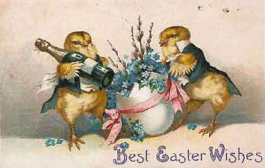 Looking at the bunny’s face, you can tell he has a serious drinking problem. Maybe he should lay off on the mint juleps for awhile.