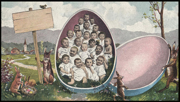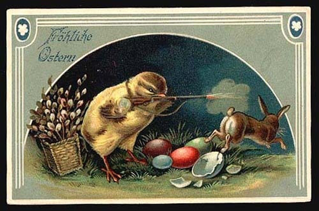 Man, and you thought today’s costumed Easter Bunnies were horrifying. I mean just look at its soulless eyes and long gnashing teeth.