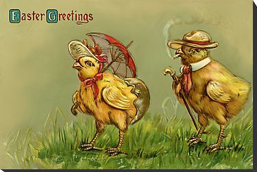 Run, girl, run for your life. Save yourself while you still can. We all know him giving out eggs with candy in them is just a way to lure children. Of course, he might just be giving her a head start. Some Easter Bunnies just love the sport of the hunt.