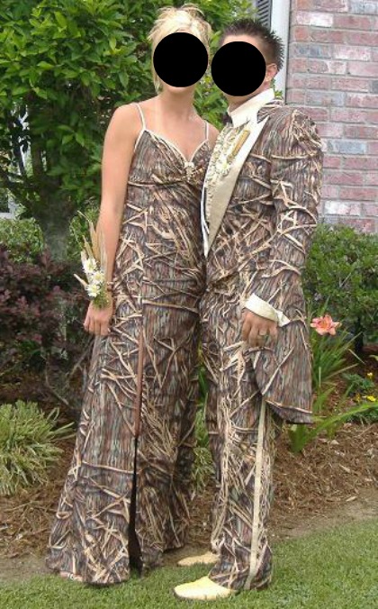 Unless your school's theme for prom is based off The Deer Hunter, I would really advise against it. Seriously, camo is proper during deer season, not prom season. Get it through your heads!