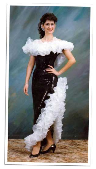 This is my cousin John in my sister’s junior prom dress. And no, he didn’t wear it to prom (they were just goofing off). But in a post devoted to prom dress fashion disasters, this is a perfect introductory photo.