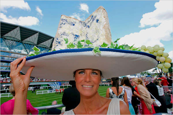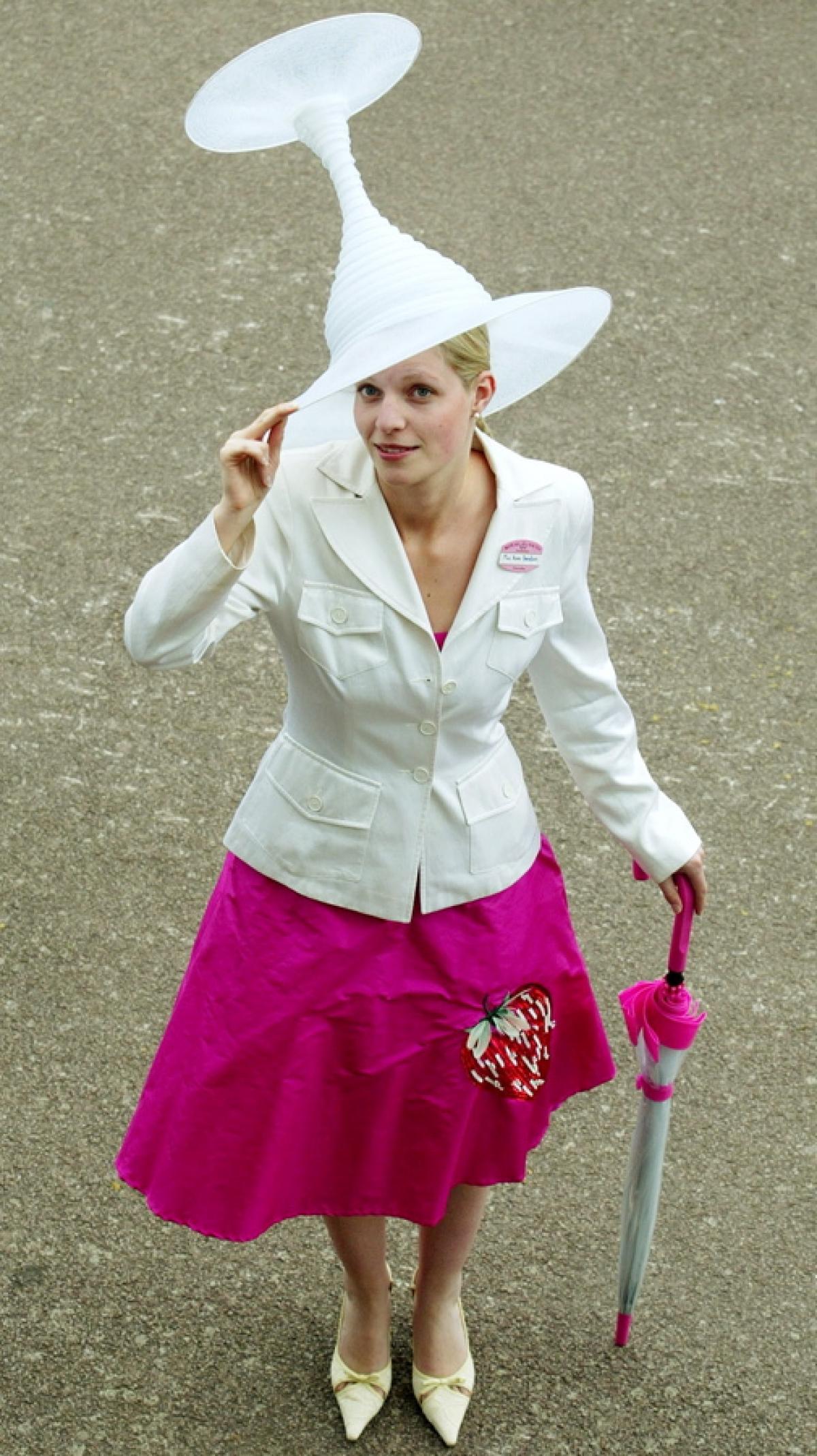 I don’t know about you, but she’s probably wearing the hat for the money. Bet the ice cream company is sponsoring this horse race, right? How else could she wear an ice cream cone on her head?