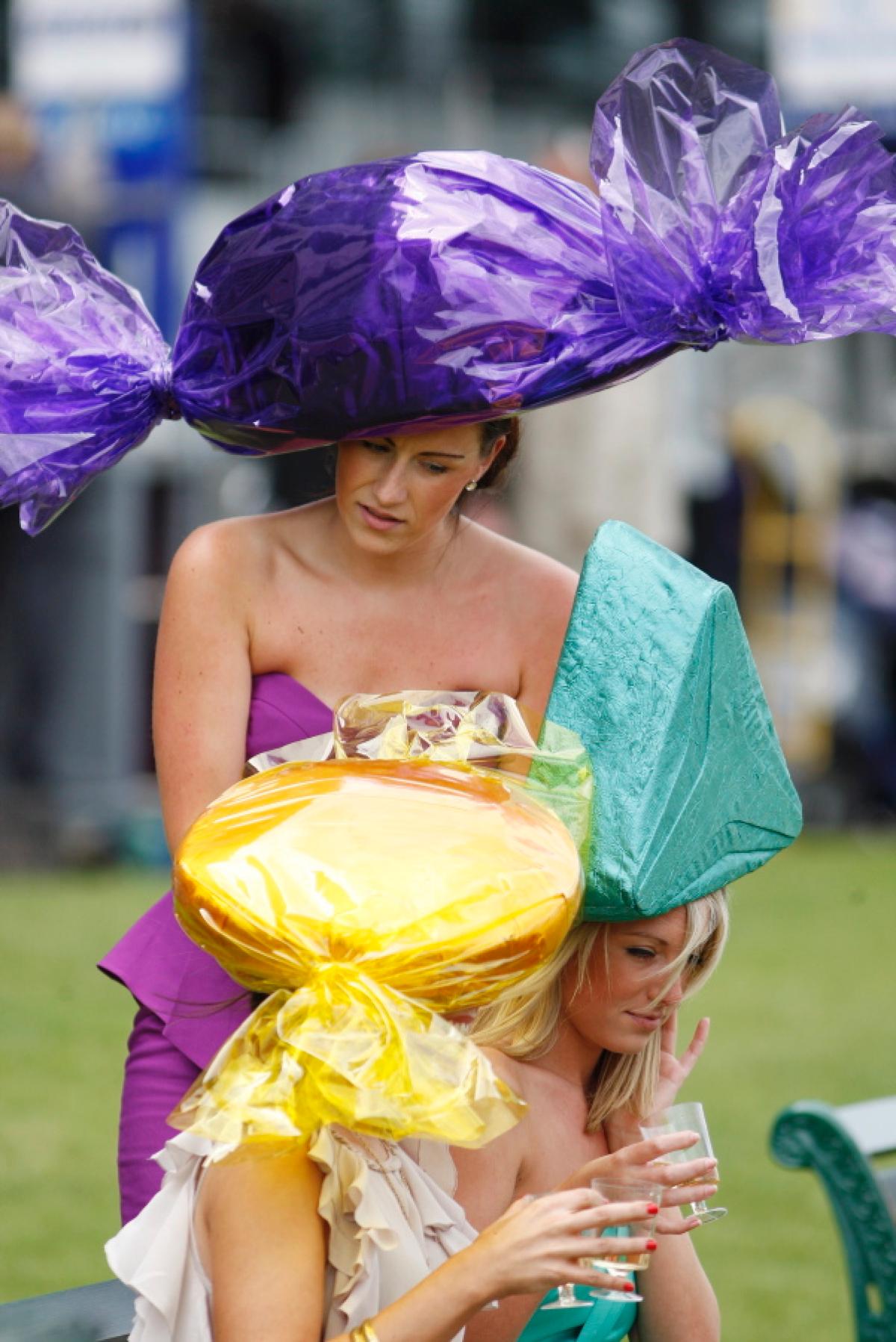 Hmm… I know the fashion industry can churn out some crazy shit these days. But I’m not sure if I’d want to be caught dead wearing a candy wrapper hat should a horse run over me at the races.