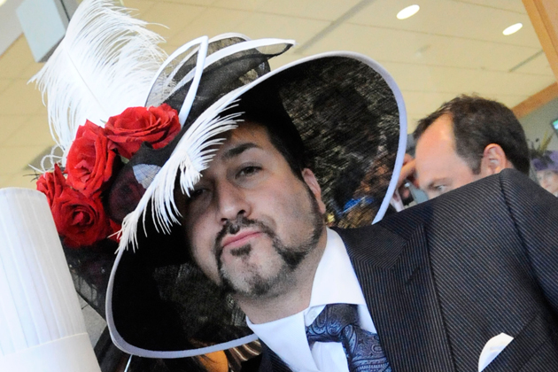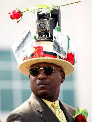 Yes, wearing ridiculous Kentucky Derby hats no longer seems limited to women anymore. I mean this guy seems more suited for a different sporting event or night club.