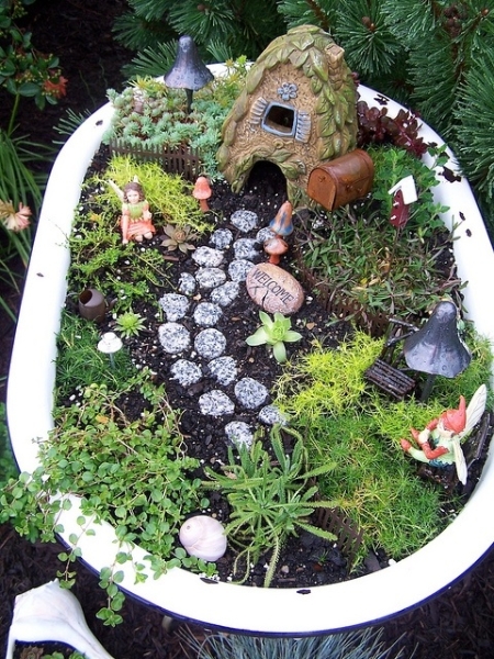 31. Of course, if you want a fairy garden scene but have little space, may I suggest making one in your old bathtub.