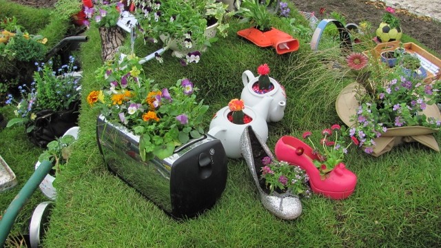 Now I'm sure this rickety wooden boat isn't good for the water. But that doesn't mean you can throw it away if you can still plant flowers in it.