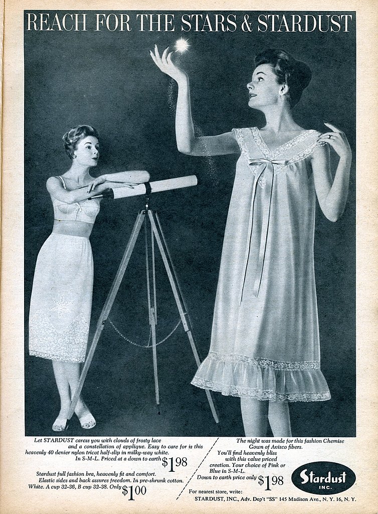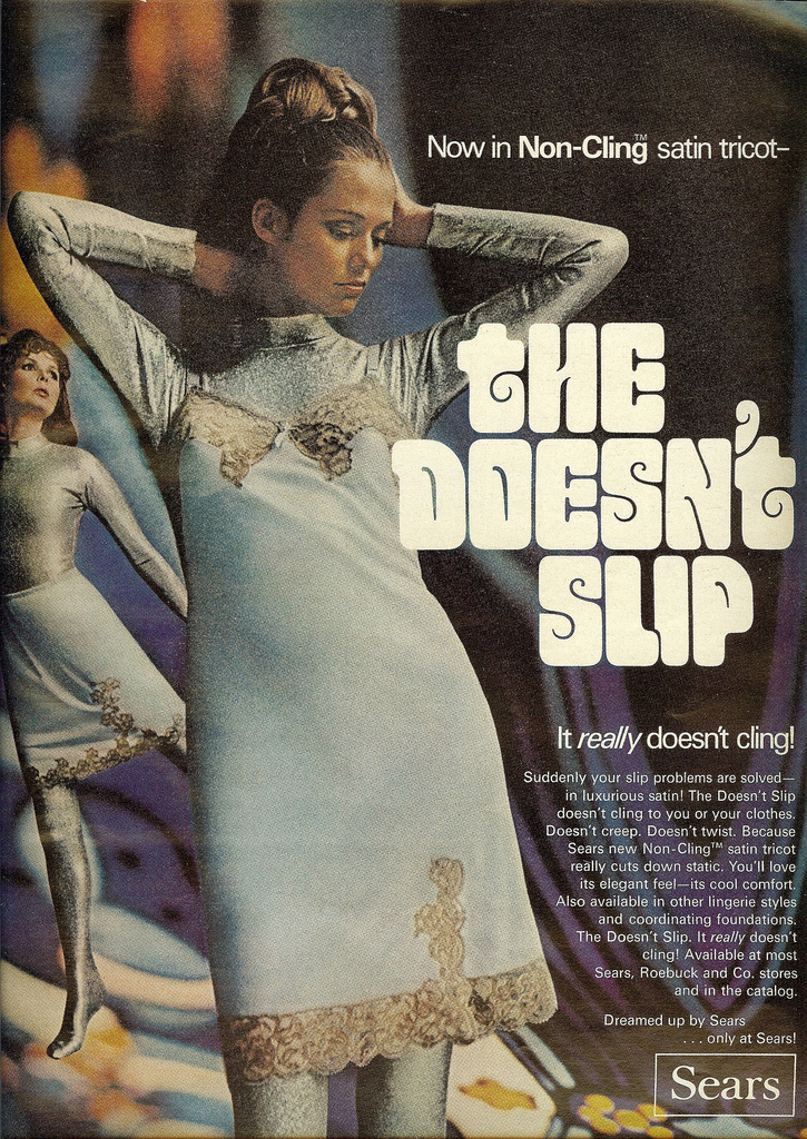 Of course, this is the kind of slip women wear over their shimmering space age suits. I’m not sure why but that’s what the ad shows.