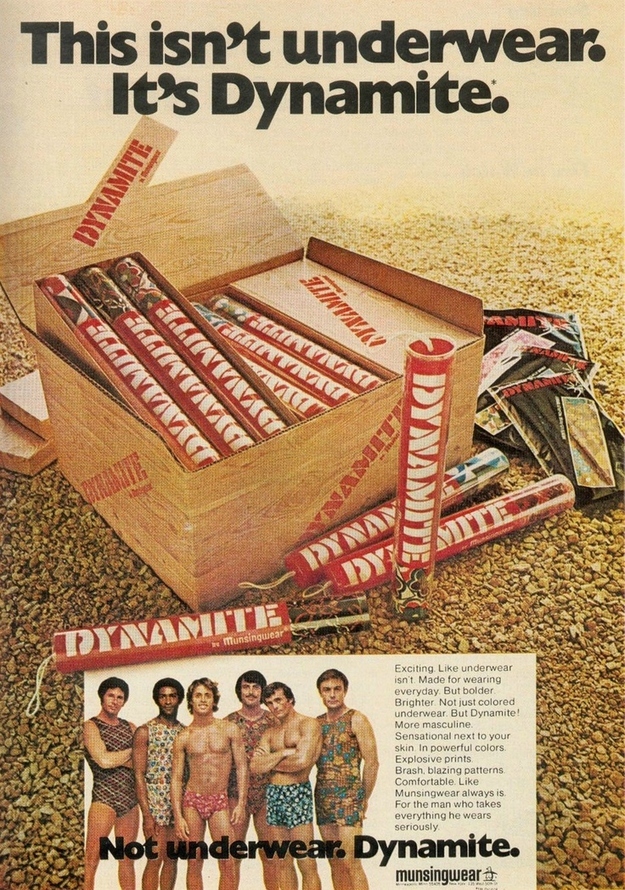 Actually “Dynamite” is a horrible name for an underwear brand. Seriously, no one wants to imagine exploding private parts. Doesn’t help that their underwear is rolled into a stick with a string. And is stored in a box.