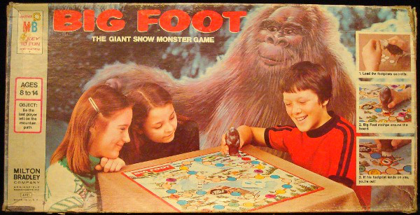 Object: Players represent gold prospectors in Alaska who have sighted the dreaded Bigfoot. Players have 2 tokens and must move either at the roll of the dice. If the player token lands on a Bigfoot space, player rolls the dice again and moves the creature to full count. If the creature moves onto a player’s token, then a disc is put on that space. If it reveals footprints, then the token is out of the game. Last surviving player wins.