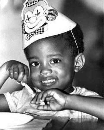 Now he just looks so adorable and happy in that fro. Of course, he’d soon shave his head and start wearing an ugly looking hat.