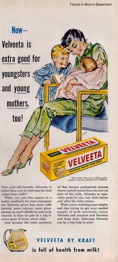 2. Velveeta: “Extra good for young kids and young mothers, too! Is full of health from milk!”