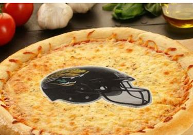 31. Bring in the spirit of your team to your pizza party with a Jacksonville Jaguars edible helmet pizza print.